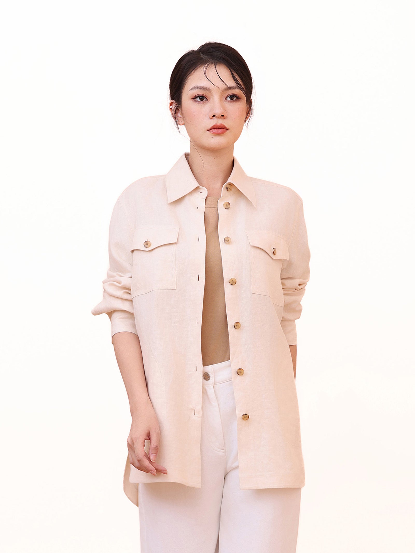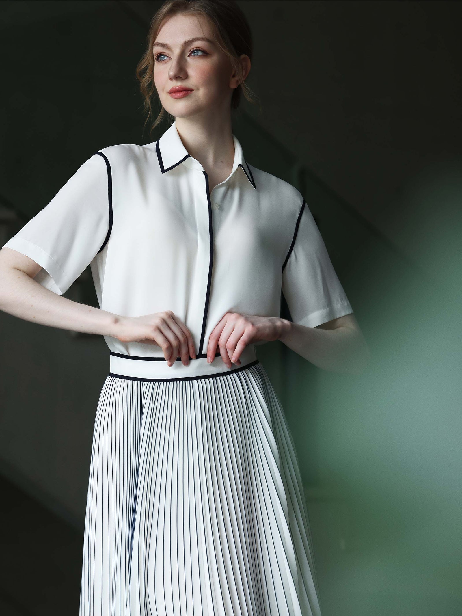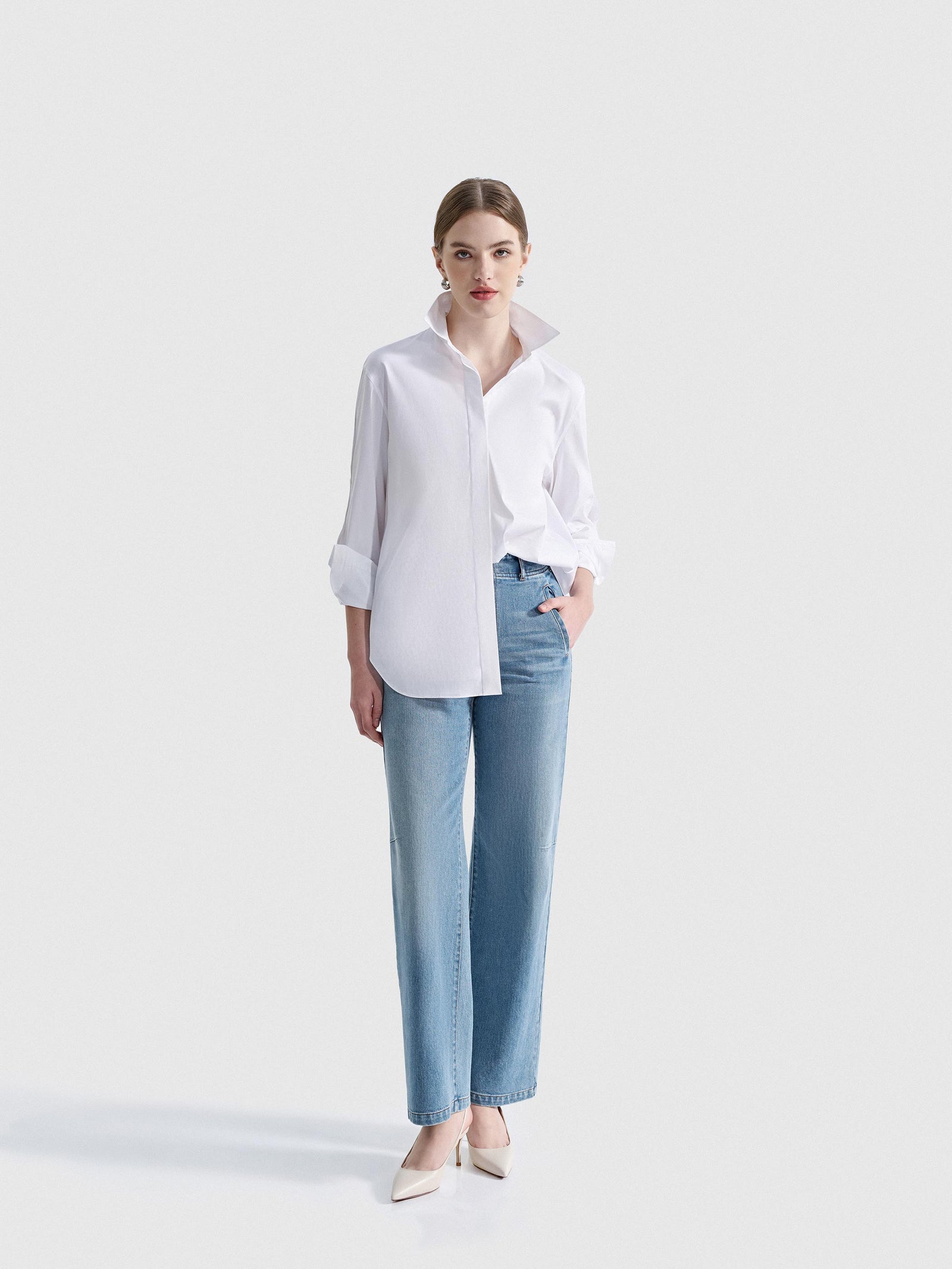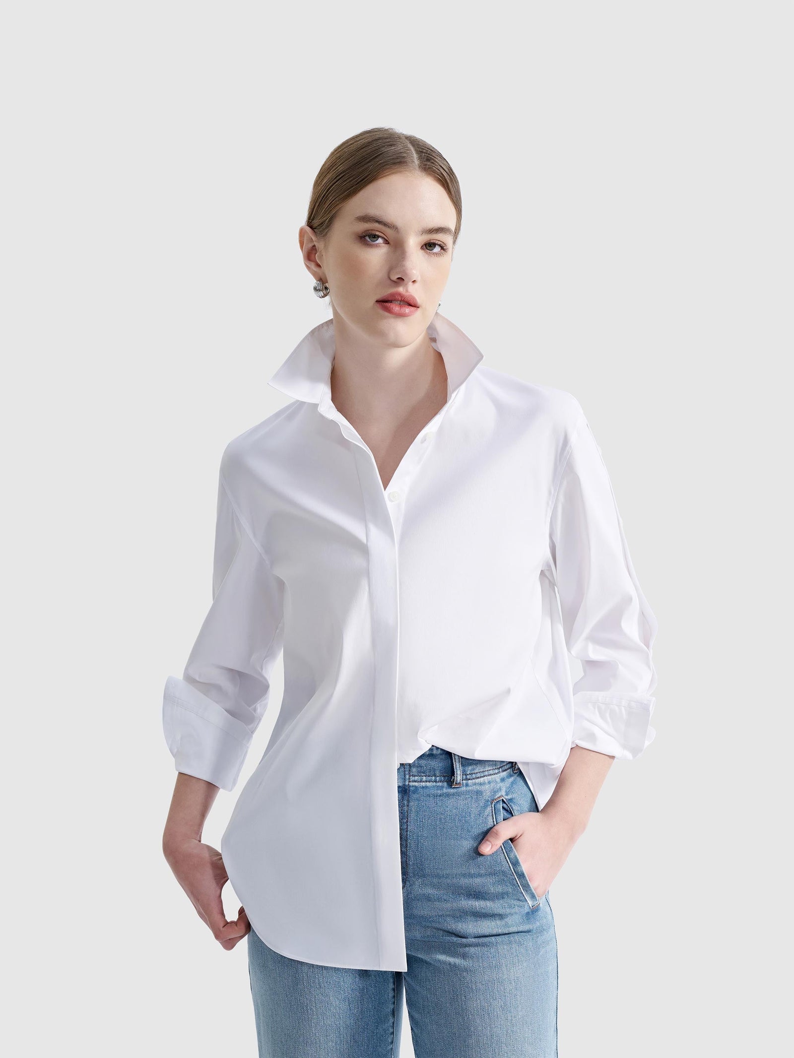 Details make the difference. So, what defines a shirt versus a blouse? A shirt is built on precision: think sharp collars, crisp cuffs, and clean lines that polish any outfit. A structured cotton-blend shirt with refined topstitching and concealed buttons, creates a clean, tailored silhouette.