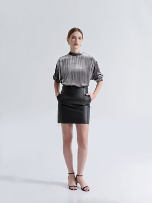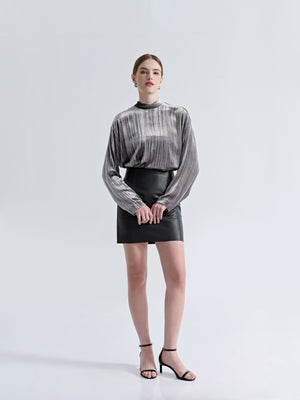 Add a sophisticated touch to your smart-casual wardrobe with our Mock Neck Velvet Top. Its rich velvet texture reflects light beautifully, offering a polished appearance that transitions effortlessly from day to evening. The mock neck cut elegantly frames your face, while the scarf-tie detail at the back adds another layer of elegance.