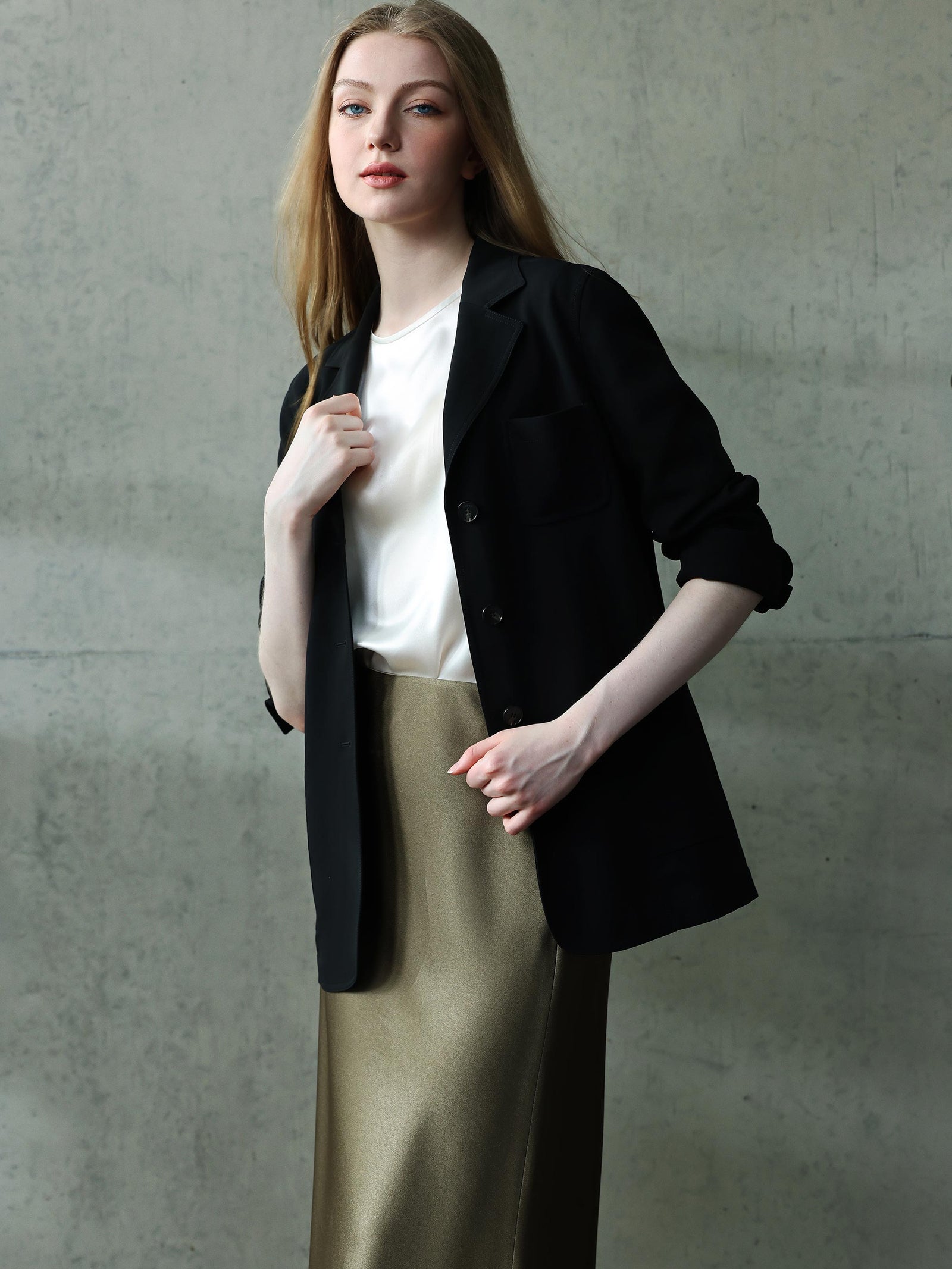 Quality garments deserve proper care. Wool and cashmere jackets benefit from occasional dry cleaning to maintain their structure and softness, while silk blends respond well to gentle spot cleaning and being aired out between wears. For leather and lambskin pieces, we recommend using a specialist leather cleaner and storing them away from direct sunlight to preserve their finish. Always check the care instructions on your garment tag to ensure each piece stays beautiful, season after season.