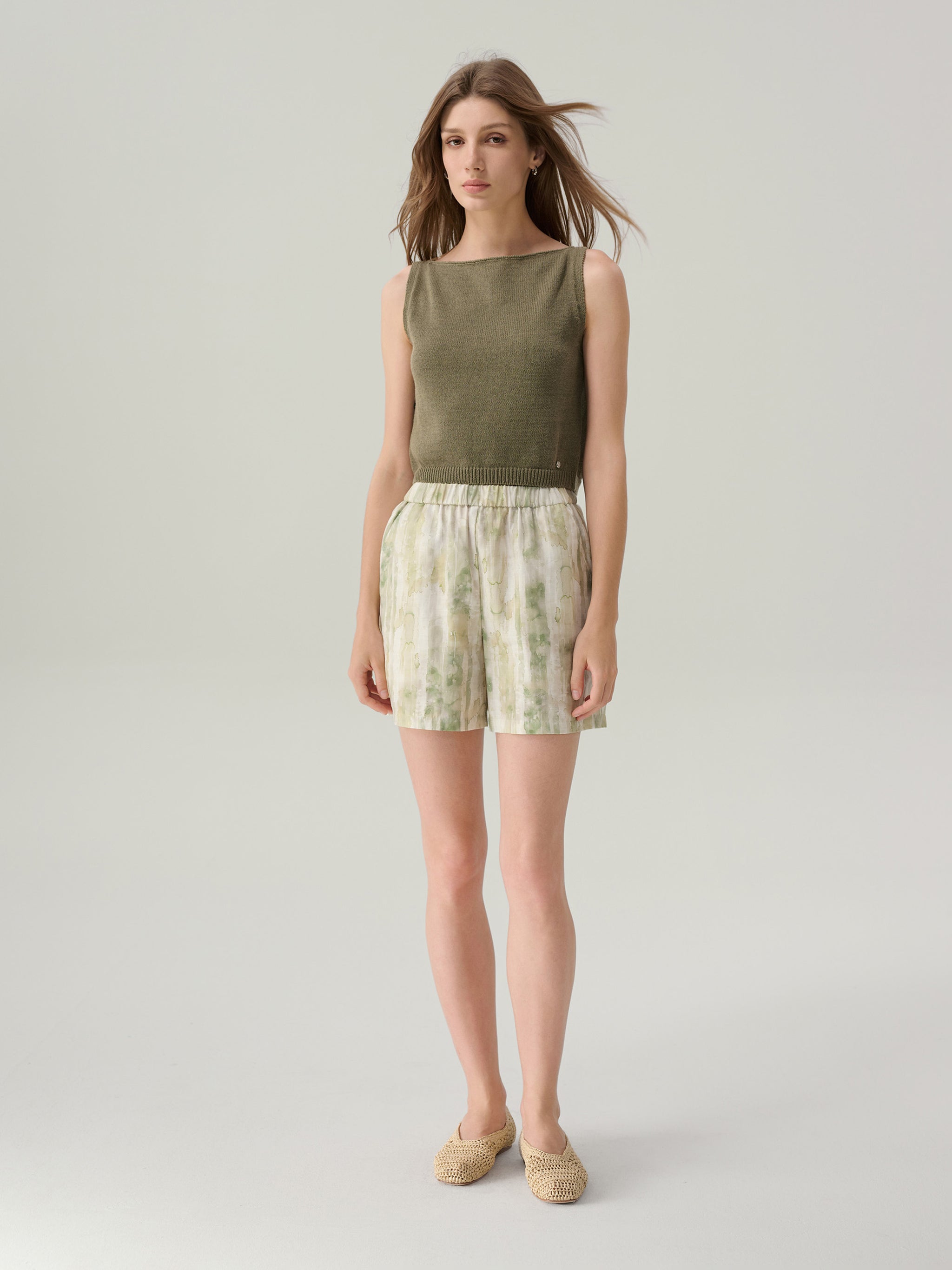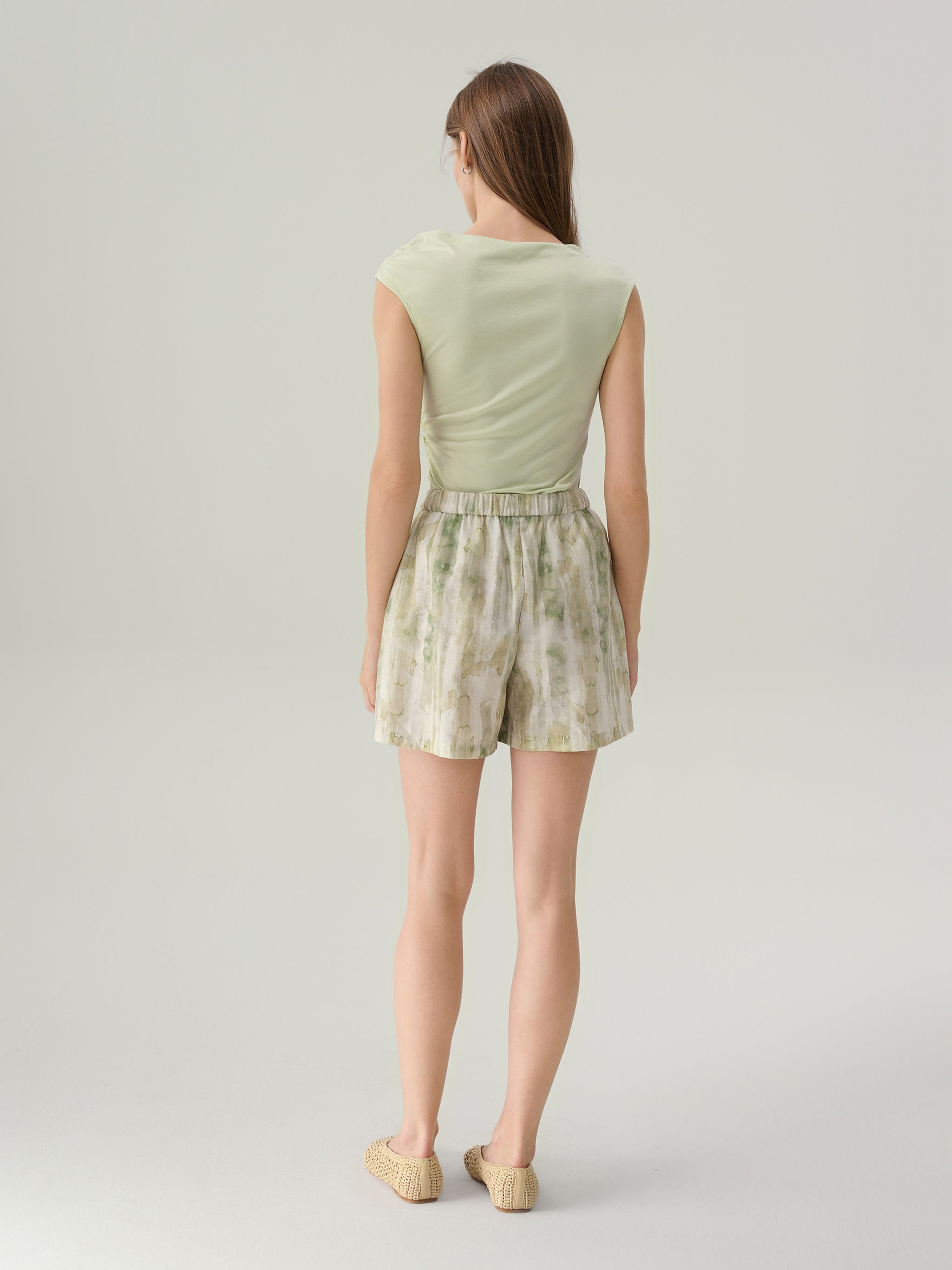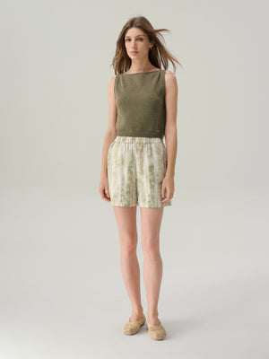 The Riley Agave Green High Waisted Shorts are a playful yet sophisticated warm-weather staple, designed with a relaxed fit and a high-rise elastic waistband for easy dressing. Cut in a watercolour-inspired agave green multi print, these shorts feature practical side pockets, making them as functional as they are stylish. Their easy silhouette pairs effortlessly with tucked-in blouses or casual tees, creating a versatile look that transitions seamlessly from laid-back afternoons to summer evenings.