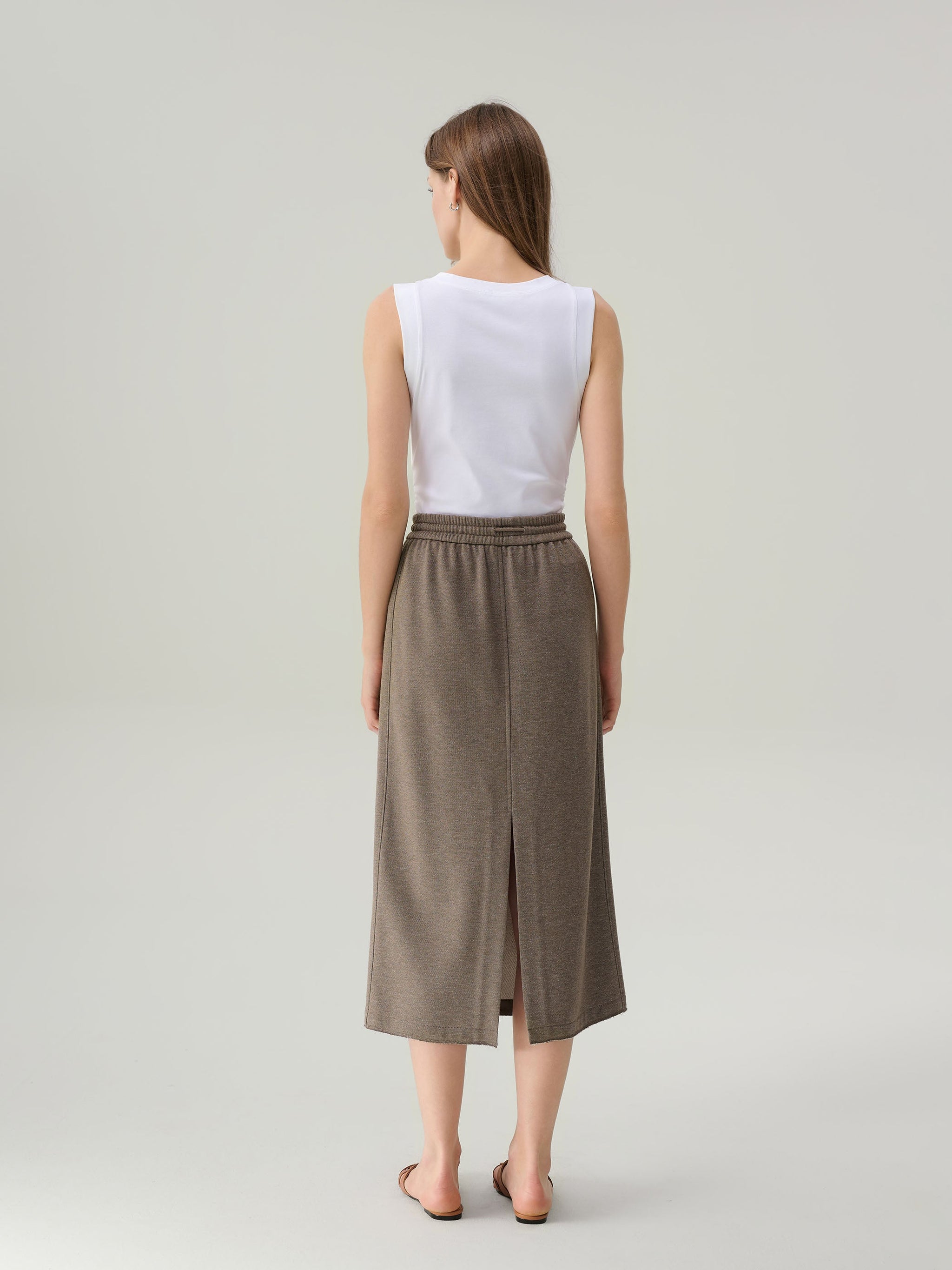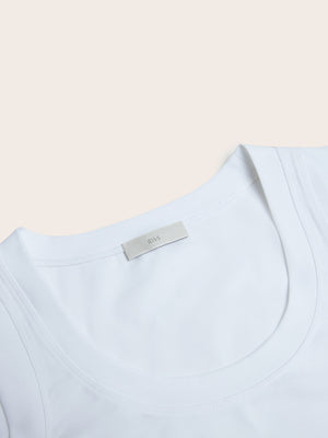 Crafted from ultra-soft Pima cotton with a touch of Lycra, it offers a silky finish, breathable comfort, and resilient stretch. The fine double-strand rib knit hugs the body without clinging, holding its shape while creating a smooth, flattering silhouette.