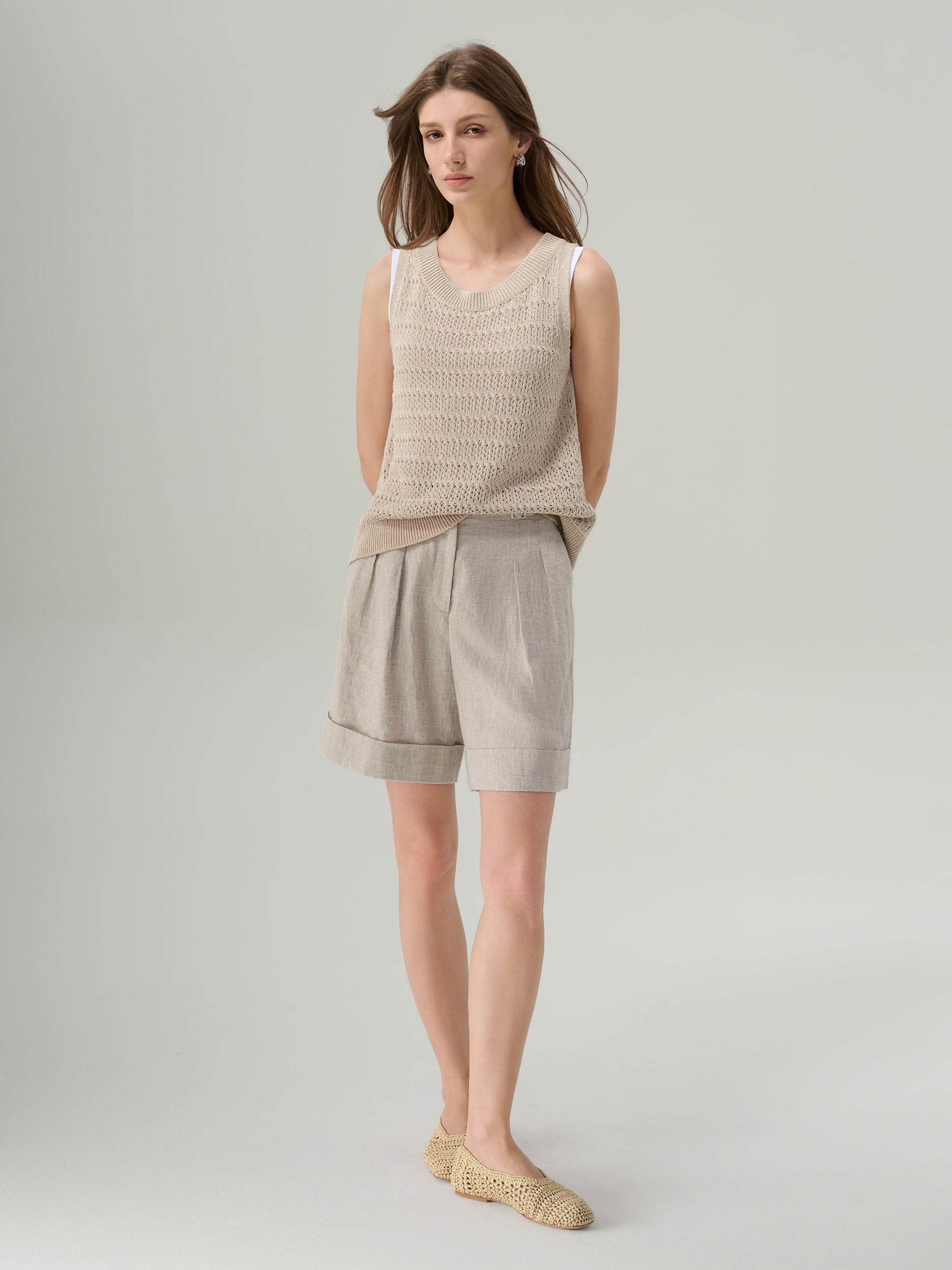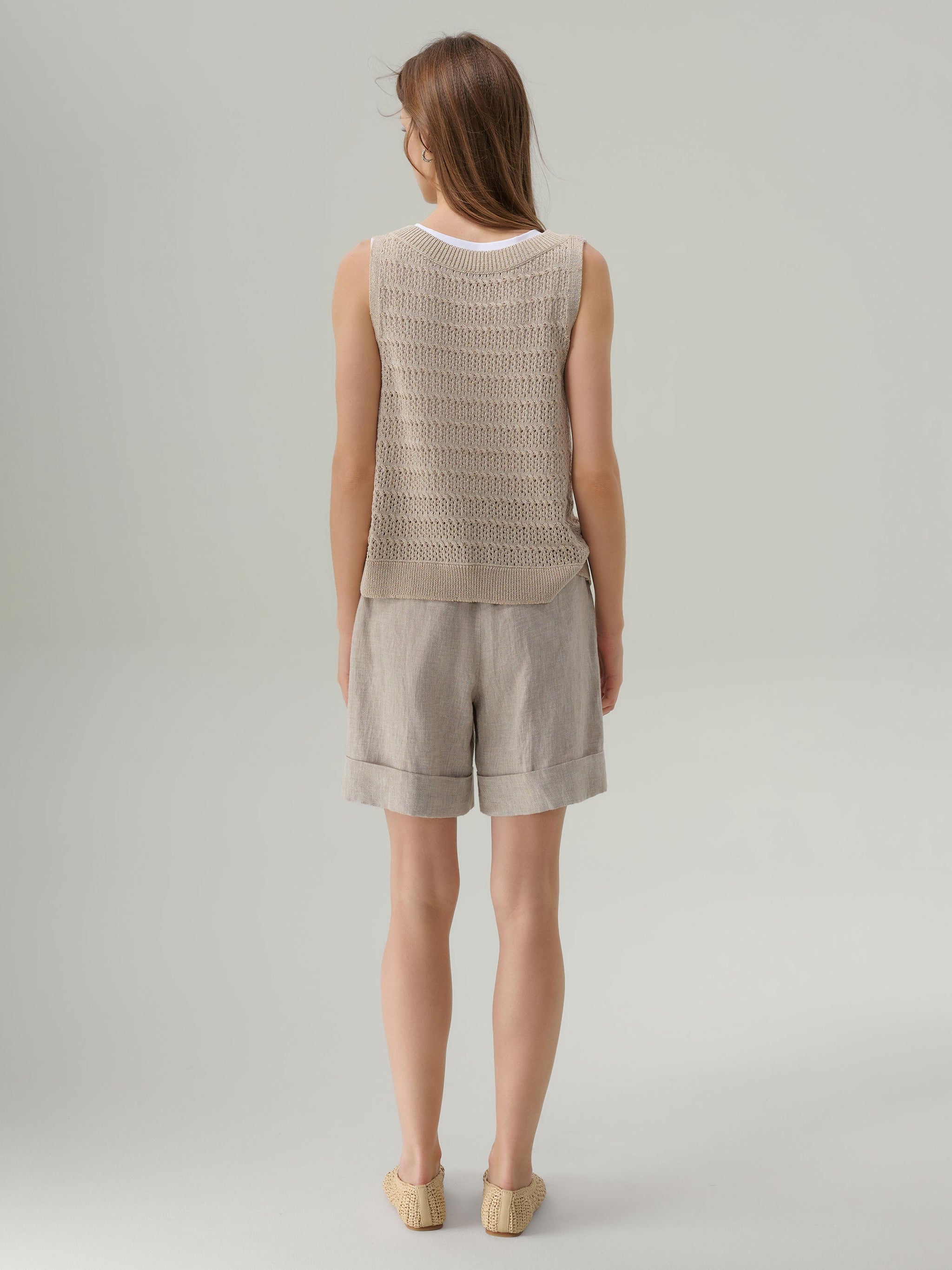 This thoughtfully blended knit combines the breathable softness of combed cotton with the airy texture of flax and the resilience of nylon. The result is a lightweight layer that feels fresh against the skin while offering gentle stretch and shape retention.