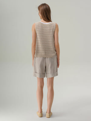 Effortless and versatile, the Eden Knit Tank Top is designed in a lightweight open-stitch knit with sequined detailing that adds subtle shimmer to everyday wear. Featuring a classic crew neckline and ribbed trims, it’s a timeless transitional piece. Wear it layered under blazers and cardigans or on its own for an easy, elevated look.