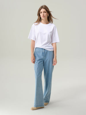 A timeless everyday piece, the Sylvia Silky T‑Shirt is crafted from pure cotton jersey and silk, with a clean silhouette and refined finish. Designed with a classic crew neckline and straight hem, it holds a structured yet soft hand feel for elevated comfort and style.