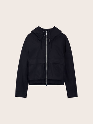 Designed for layering, the Aven Oversized Jacket balances utility with a modern silhouette. The boxy fit is cinched at the hem with subtle elastic detailing, while oversized patch pockets and a two-way zipper add functional, comfortable appeal. Adjust the zipper to play with the shape and allow for added ease of movement at the hem. A structured hood with adjustable toggles offers protection against the elements without disrupting the jacket’s clean lines. Finished with tailored cuffs and tonal topstitching, it pairs effortlessly with both polished separates and everyday essentials.