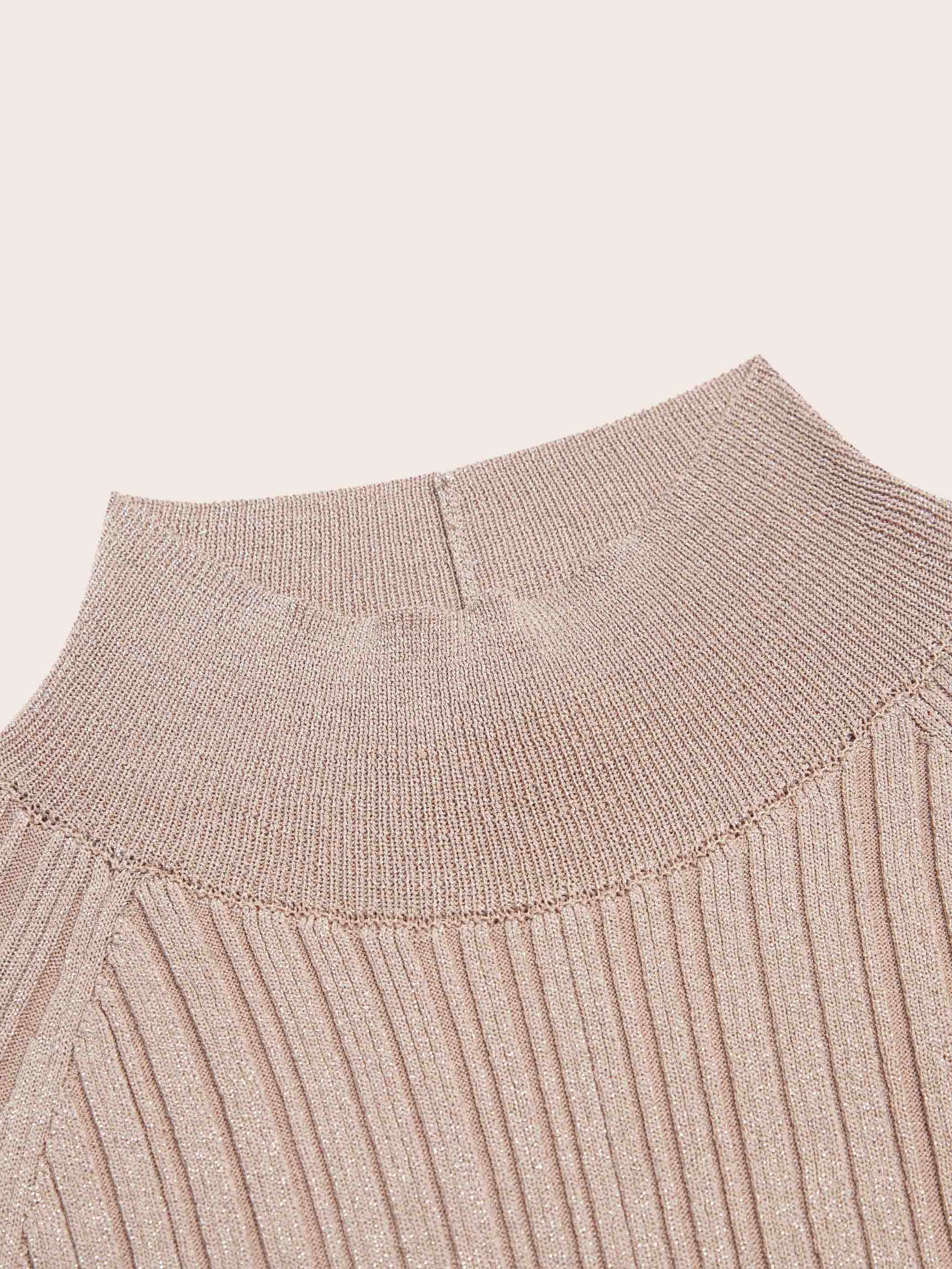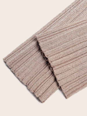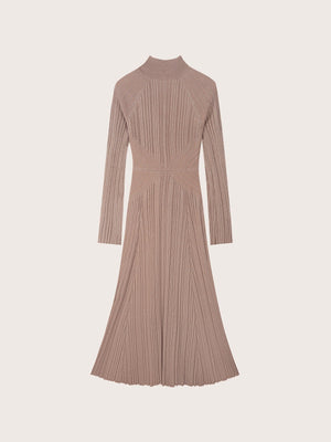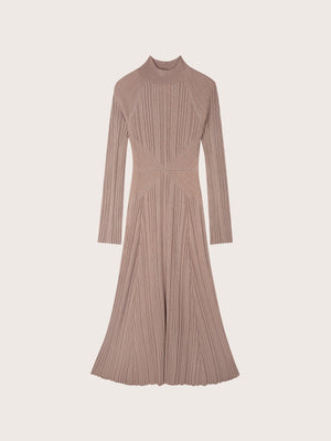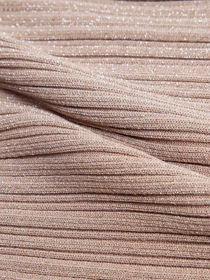 The Arden Knit Dress features a flattering fit-and-flare design with ribbed knitting and multi-directional seams that accentuate the waist. The metallic-finish fabric catches light beautifully, creating a sense of depth and dimension. With a structured bodice and fluid hemline, the silhouette moves gracefully, making it an easy choice for both day and evening wear.