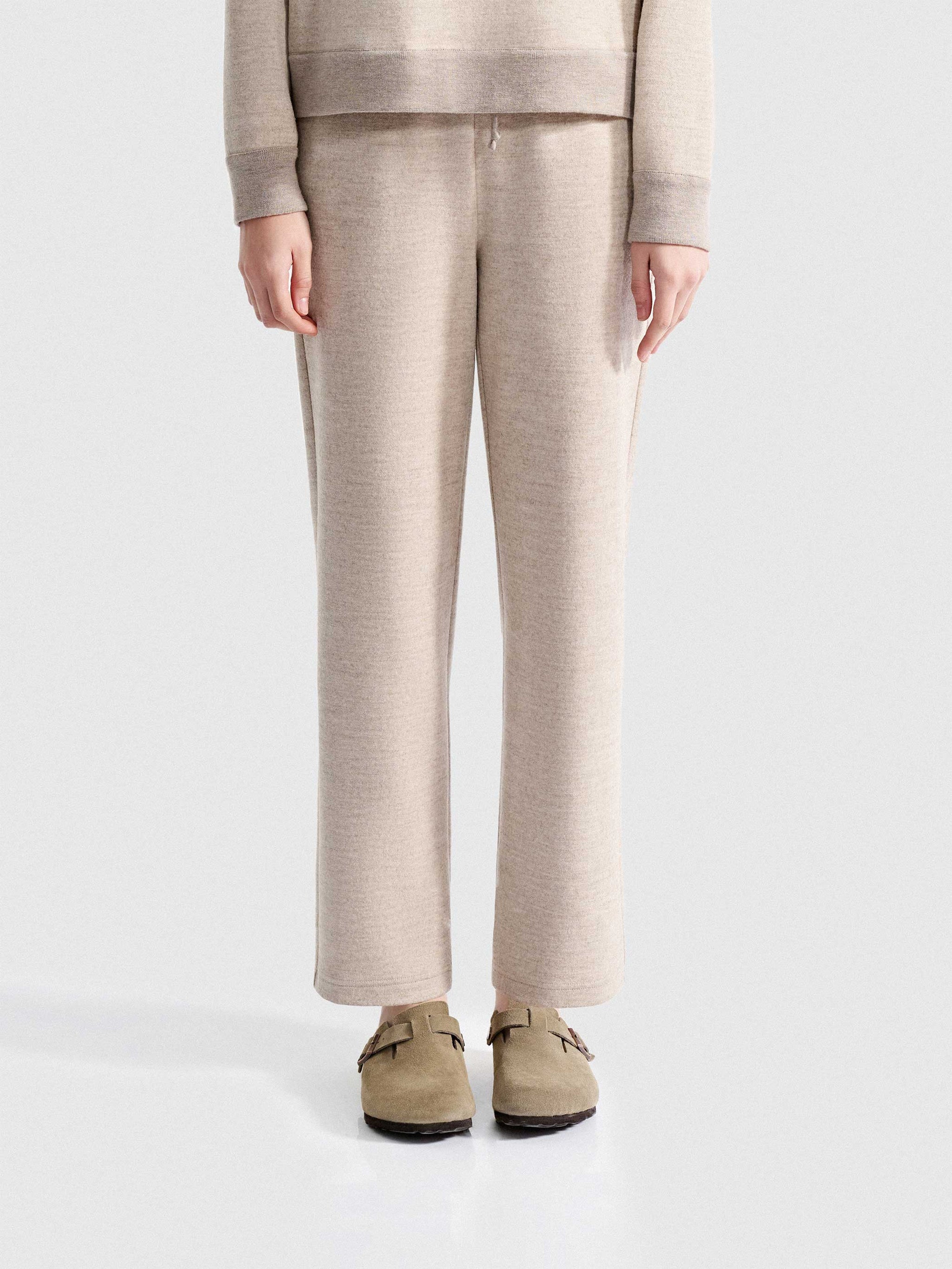 The Cassia Knitted Trousers exude effortless luxury with their ultra-soft wool-cotton blend and relaxed, straight-leg fit. A ribbed drawstring waistband provides a secure, adjustable fit, while practical side pockets enhance their functionality. Wear them with an oversized knit for a laid-back appeal or style them with a turtleneck for a more refined look.