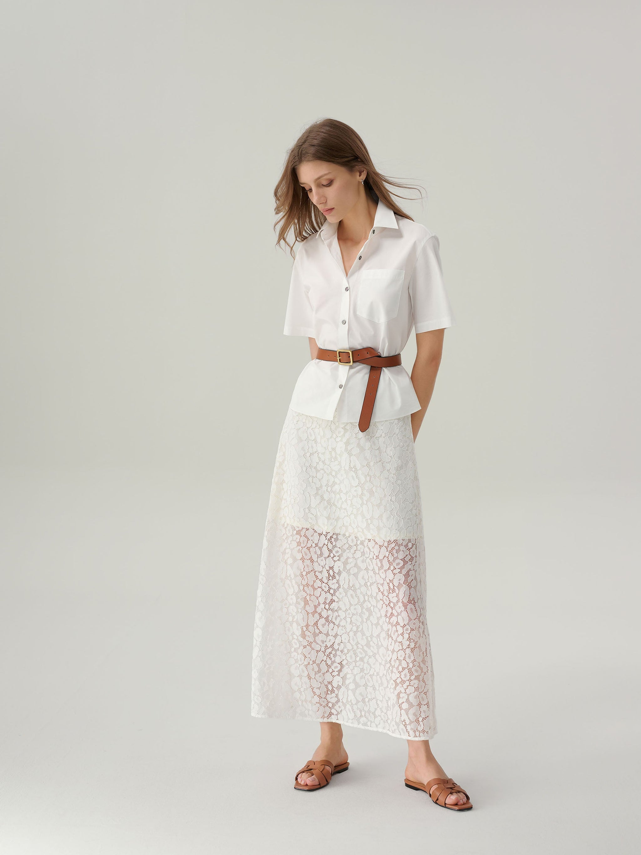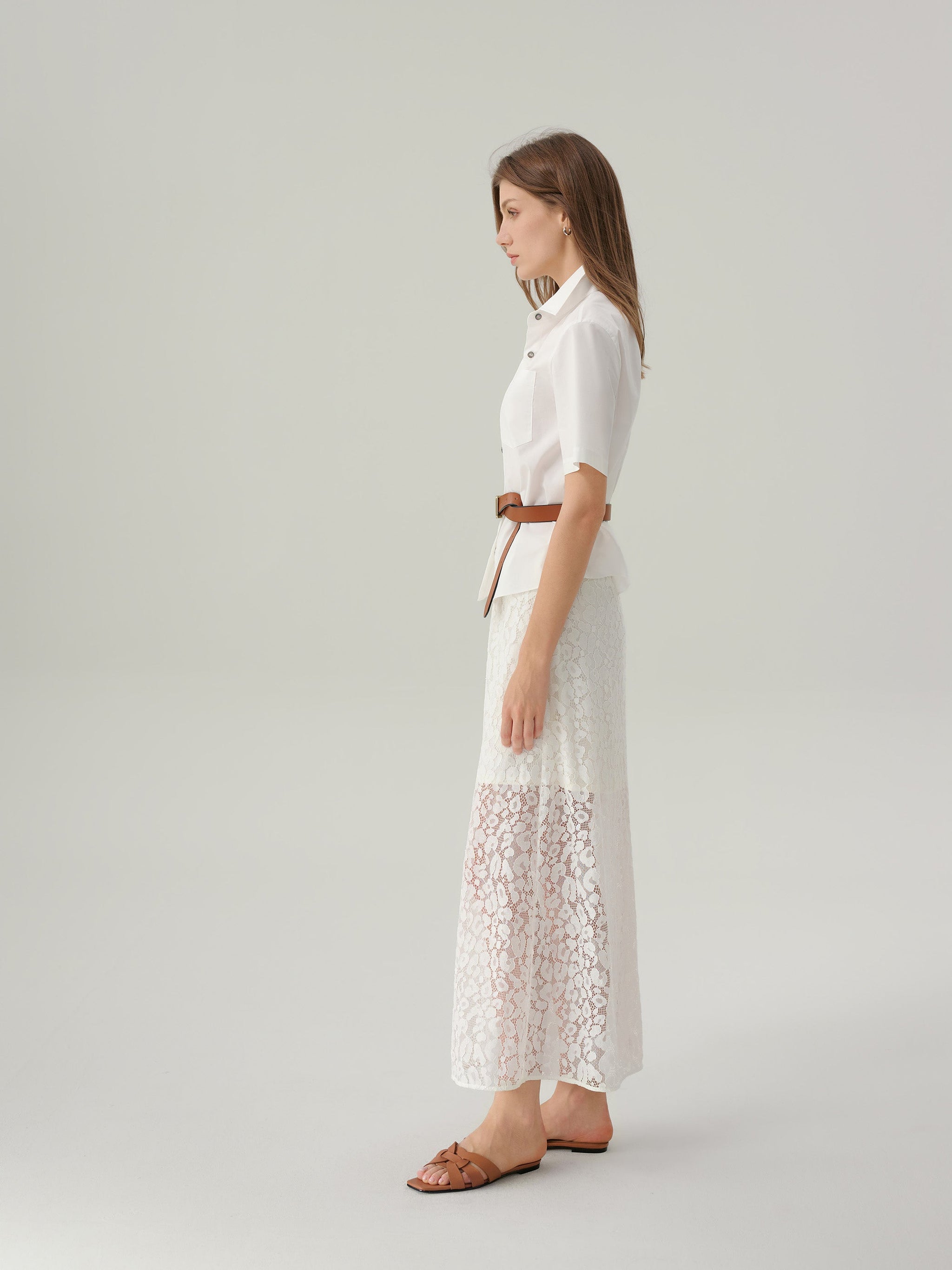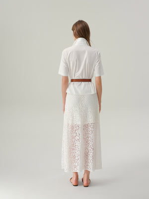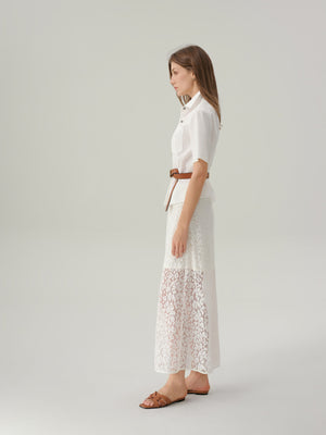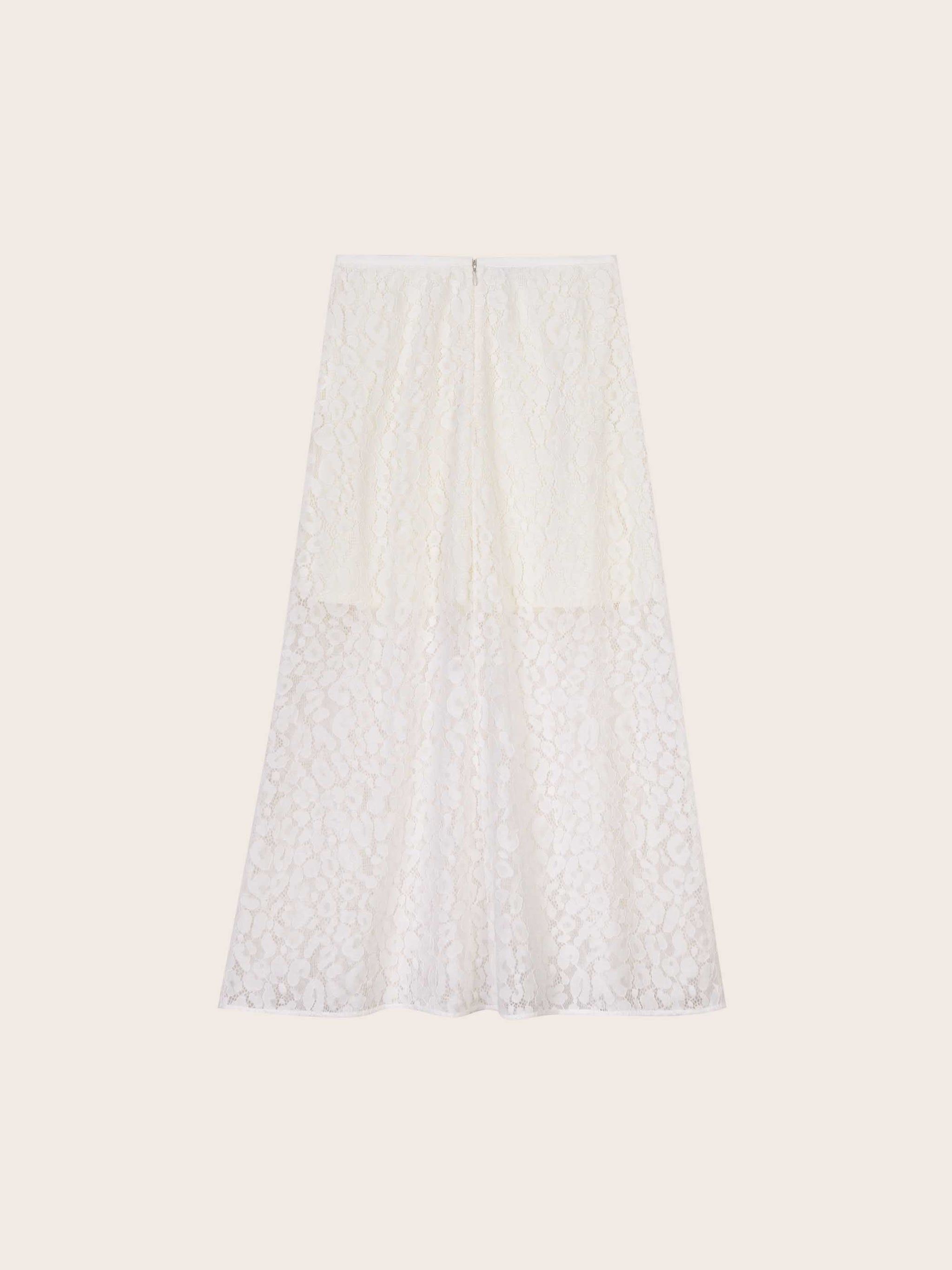 The Felicity Lace Skirt is a feminine take on a timeless silhouette. Crafted from delicate floral lace with a soft lining for coverage, this midi-length style falls gracefully for a light and romantic look. Finished with a subtle waistband and concealed zip closure, it pairs effortlessly with silk blouses or knit tops for both daytime and occasion dressing.