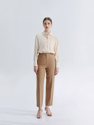 Crafted from 100% silk, our Silk Buttoned Down Blouse with Elastic Sleeve Detail adds a touch of luxury to any outfit. Soft and airy, the silk drapes beautifully, offering a naturally flattering fit. Perfect for both office wear and evening outings.