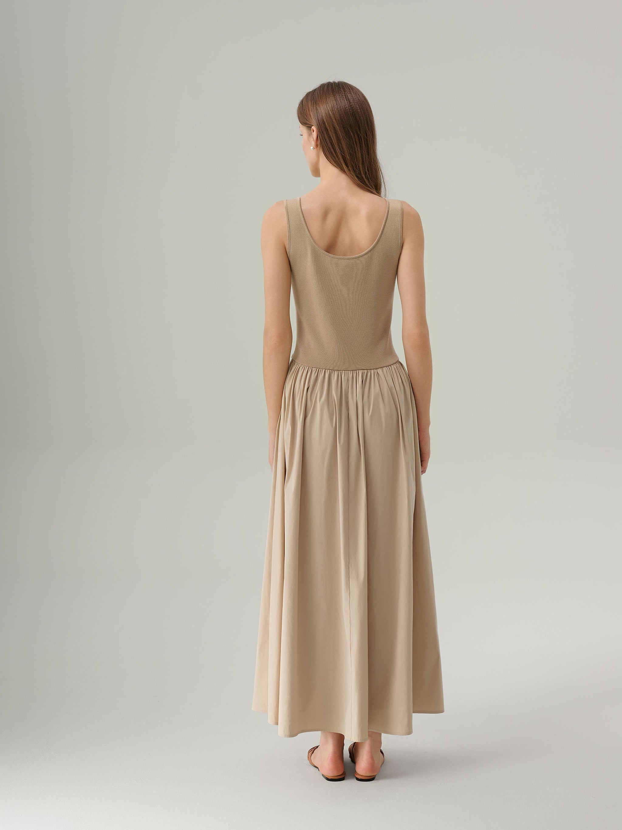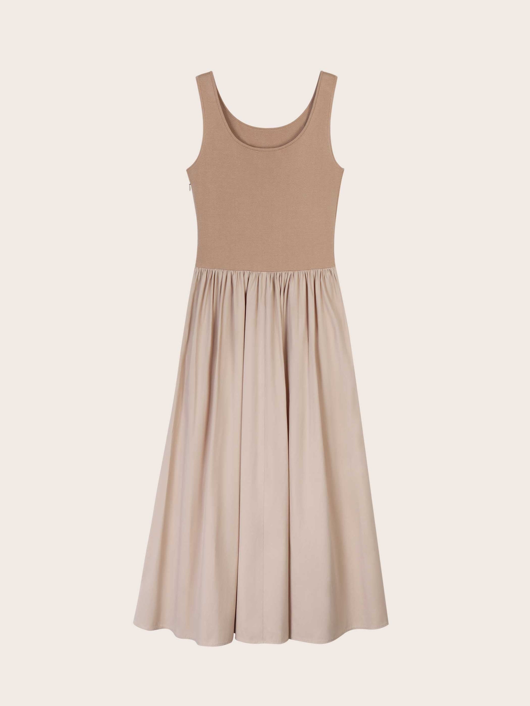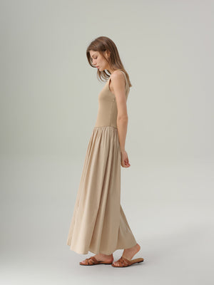 Elegant and easy, the Madeline Tank Top Maxi Dress is a sleeveless fit-and-flare midi that flatters a range of body types. A scoop neckline and contoured bodice create a clean, elongating silhouette, while the gathered skirt adds volume and fluidity. Finished with a hidden side zipper for ease, it moves effortlessly between casual days and elevated occasions with just a change of accessories.