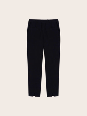 Cut to a clean, tapered silhouette, the Maisie Ankle Suit Pants feature a tailored waistband with subtle pleating, side pockets, and discreet back welt details for a refined finish. A split back hem and elasticized waistband add comfort and ease of movement, while the slight stretch in the fabric ensures all-day wearability. Designed for both polish and comfort, these pants transition seamlessly from work to evening.