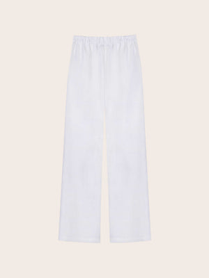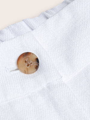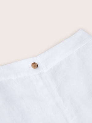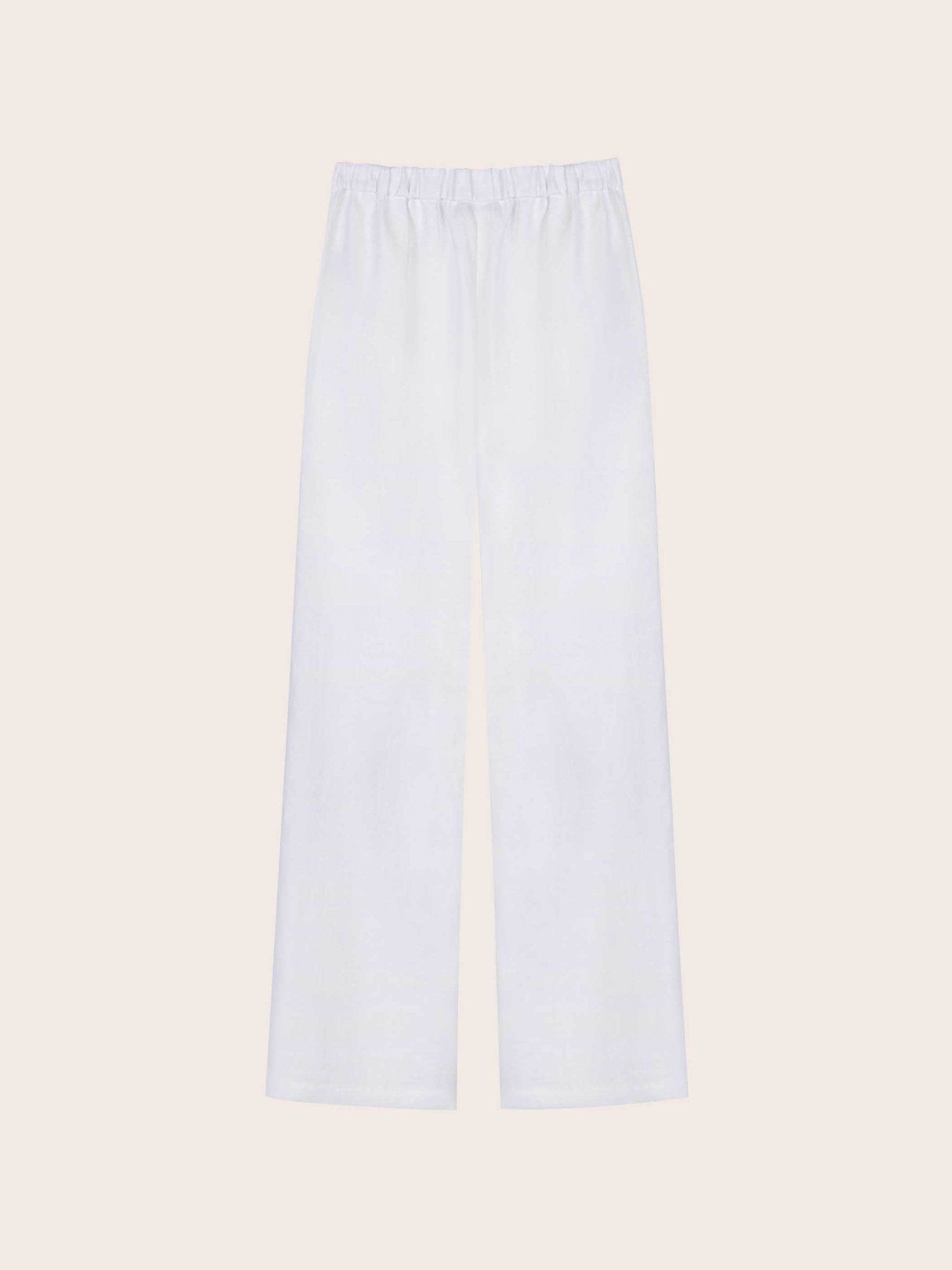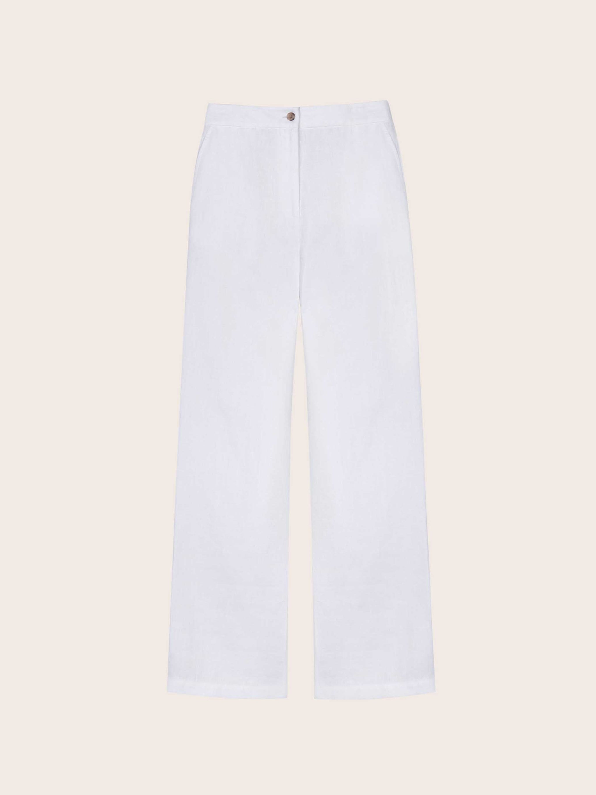 A timeless addition to your warm-weather wardrobe, the Winslie White Linen Pants are crafted from breathable linen in a clean white hue. Designed with a high-rise waist, straight-leg silhouette, and functional side pockets, they offer a refined yet relaxed look. A tortoiseshell button and hidden zip closure complete the minimalist design, making these pants a lifelong staple in your wardrobe.