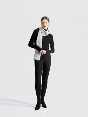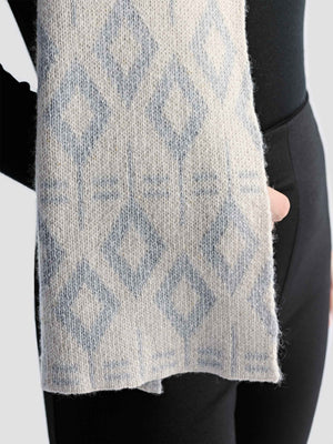 A statement accessory, the Xena Cashmere Sequined Jacquard Scarf features a delicate jacquard weave with subtle sequins for a touch of shimmer. The geometric pattern in soothing blue and cream tones elevates its refined craftsmanship. Whether draped over a monochrome ensemble for evening elegance or layered over a winter coat, this scarf adds a subtle touch of glamour.